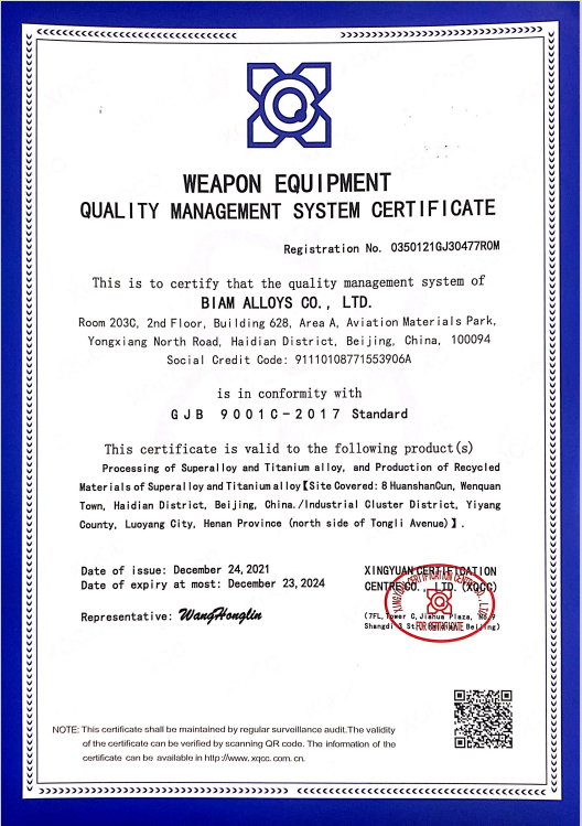 国军标证书英文